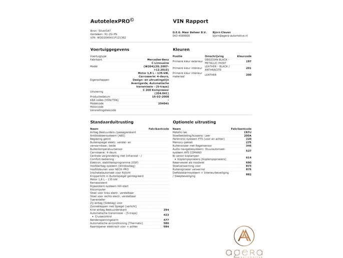Kortom; een bomvolle, origineel Nederlandse C-klasse van de 1e eigenaar, aangeboden voor een schappelijke prijs.