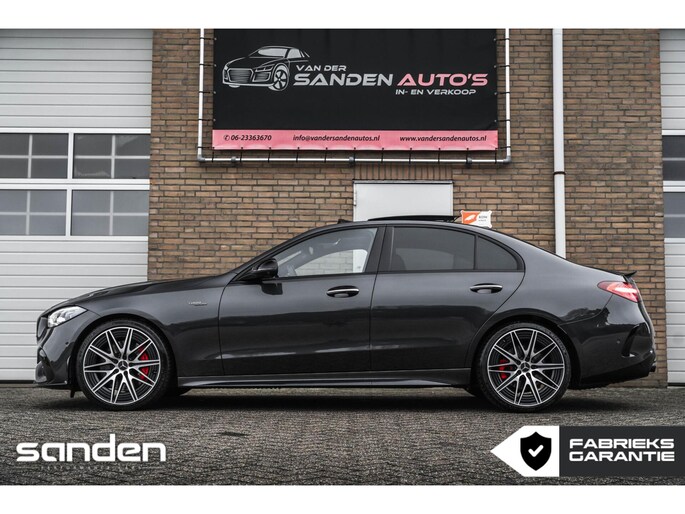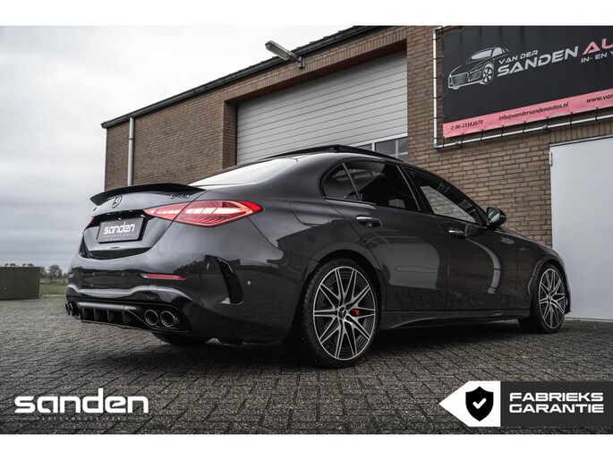 Mercedes C43 AMG 4MATIC | Graphitgrau | 421 pk | Panoramadak | 360° Camera | Burmester 3D | Memory | Stoelverwarming | AMG Styling pakket | Night pakket | Digital Light | 20" AMG velgen | Premium Sfeerverlichting | Achterasbesturing