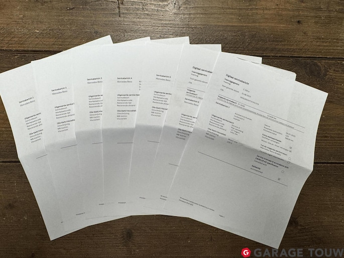 De volledige historie is bij de auto, inclusief afgedrukte service beurten en laatste factuur van het vervangen van de compressor van de luchtvering en het spoelen van de automaat.