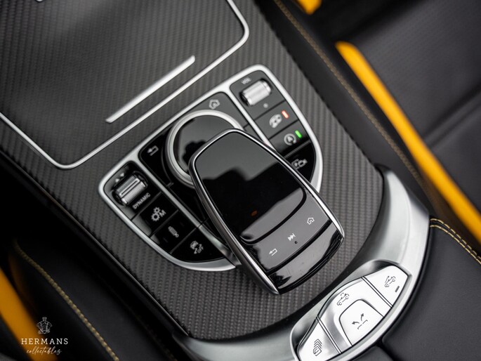De Mercedes beschikt over de volgende extra opties: Keramische remmen, Carbon exterieur, Carbon interieur, Keyless Entry, Head-Up display, Burmester audiosysteem, AMG Performance seats, Memory seats, Stoelverwarming, Nekverwarming, AMG Performance uitlaat ( schakelbaar ), AMG Drivers Package, AMG Stuurwiel in alcantara, Sfeerverlichting, 360* camera, Adaptieve Cruise Control en dodehoekdetectie.