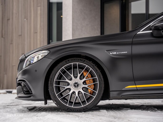 Deze gelimiteerde Mercedes is uitgevoerd in de Manufaktur kleur ''Graphite Grey Magno'' in combinatie met het AMG Performance interieur afgewerkt met gele stiksels. Tevens is deze C63s uitgevoerd met het AMG Carbon pakket in zowel het interieur als het exterieur!