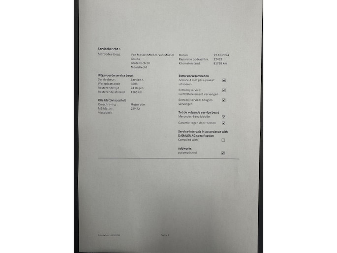 Kilometerstand gecontroleerd