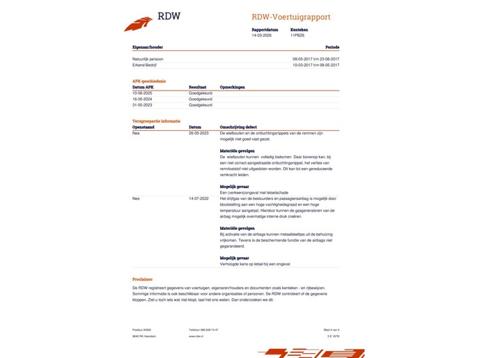 Kilometerstand gecontroleerd