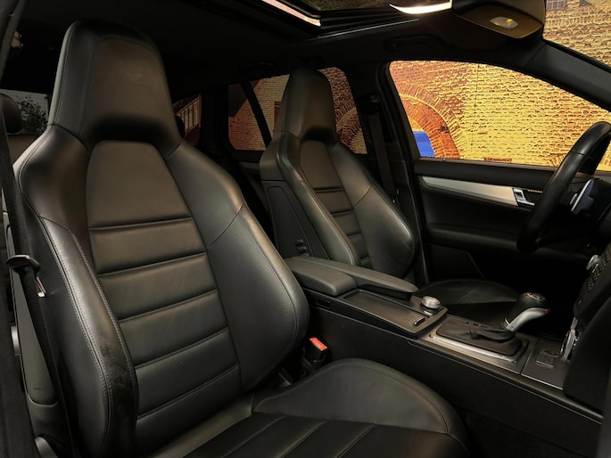 Alle technologie in de Mercedes-Benz C-klasse Estate is er op gericht om jouw rit veilig en gemakkelijk te laten verlopen. Deze auto wíl gewoon gezien worden: kijk maar naar de sportieve AMG-styling. De aandrijving van deze Mercedes-Benz wordt verzorgd door een achtcilinder motor en een automatische transmissie. Neem plaats op de comfortabele stoelen. Dankzij de elektrische bediening en het geheugen is het eenvoudig om hierin de beste zitpositie te vinden. Xenonverlichting staat borg voor helderwit licht en een krachtige lichtbundel. Tot de uitrusting behoren ook schuif- en kanteldak, 19 inch lichtmetalen velgen, AMG-styling, sportonderstel, zwarte hemelbekleding en aluminium dakrailing.