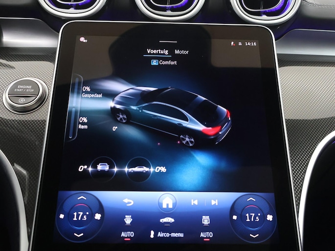 Door het combineren van beelden van vier camera's, biedt de 360 graden camera een naadloos en gedetailleerd beeld van de hele omgeving rondom deze auto. Deze Mercedes-Benz C-Klasse is 'connected'. Belangrijke functies worden permanent gemeten en zijn uit te lezen via een speciale app, ook op afstand. Het high performance audiosysteem staat garant voor een levendige en krachtige muziekweergave. Zorgeloos en geconcentreerd rijden? Het navigatiesysteem met harde schijf wijst de weg! Electronic climate control regelt volautomatisch de temperatuur. U kiest de gewenste temperatuur en het systeem doet de rest. Deze auto is voorzien van DAB ontvangst, regensensor, cruise control, sportstuurwiel, keyless entry en automatisch dimmende binnen- en buitenspiegels.
