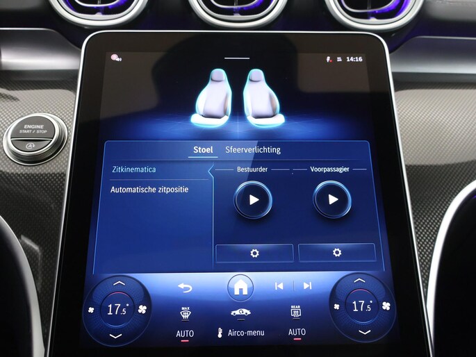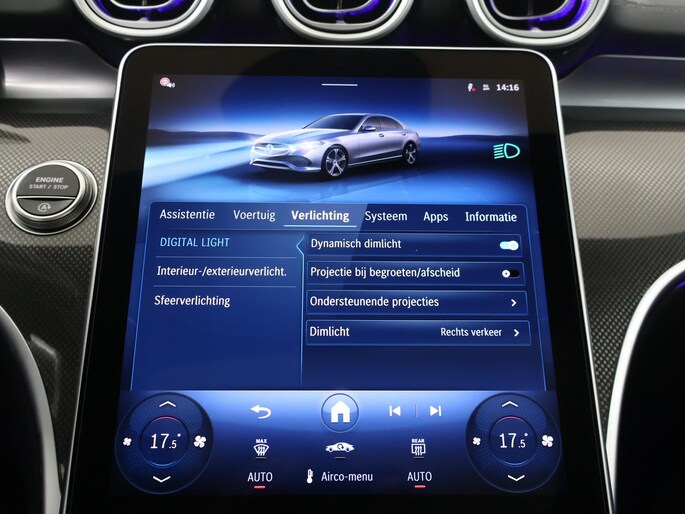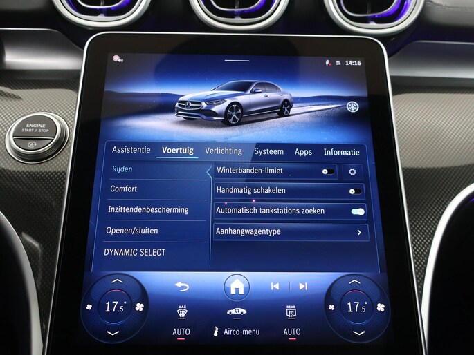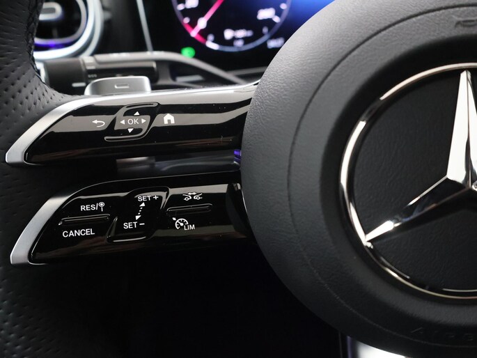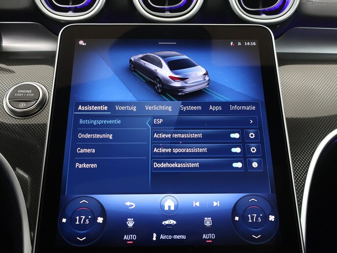 Als bestuurder van deze Mercedes-Benz bent u nooit alleen. U wordt onderweg bijgestaan door technologische hulpmiddelen die samen met u de weg in de gaten houden. Als het nodig is, grijpen ze zelfs in, door te remmen of bij te sturen. Blik permanent op de weg en toch belangrijke functies in beeld? De head-up display projecteert rij-informatie op de voorruit! Een belangrijke bijdrage aan de veiligheid onderweg levert de verkeersbord-detectie in deze Mercedes-Benz. Deze Mercedes-Benz C-Klasse is ook behulpzaam als het gaat om een rechte koers. Het Lane-keeping systeem signaleert en corrigeert als u onbedoeld de rijstrooklijnen dreigt te overschrijden. De auto is ook uitgerust met dodehoekdetectie, vermoeidheidsherkenning, autonoom remsysteem en bandenspanningcontrolesysteem.