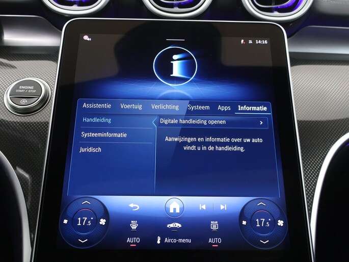 - Centraal display met 11,9" LCD touchscreen met een resolutie van 1.624 x 1.728 pixels (868)