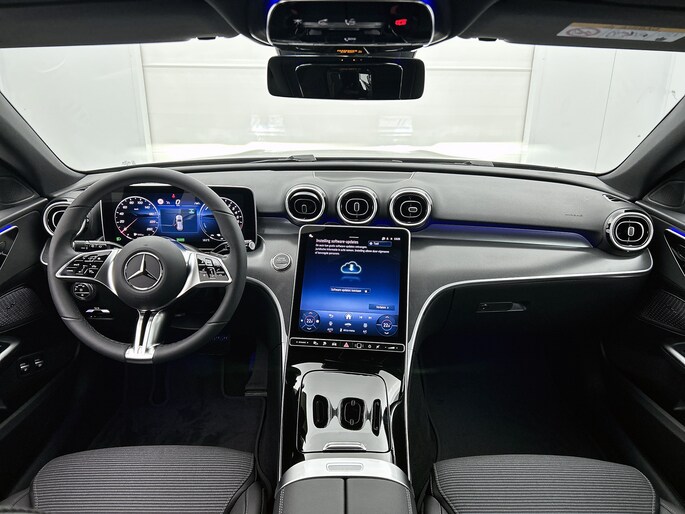 De nieuwste veiligheidssystemen komen in deze Mercedes-Benz C-klasse Estate samen. Het Lane-keeping systeem registreert permanent of je binnen de lijnen van de rijstrook blijft; dwaal je onbedoeld af, dan waarschuwt het systeem en corrigeert de koers. Met voorzieningen als actief stadsremsysteem en bandenspanningcontrolesysteem, ben je altijd veilig onderweg.