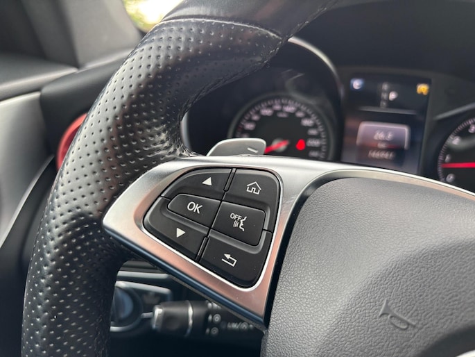 Uitrusting/bijzonderheden: Panoramadak, AMG interieur/exterieur, Sportonderstel, 18" lichtmetalen velgen, Voorstoelen in hoogte verstelbaar, Climate controle, Dodehoek detectie, LED verlichting, Lederen/stof bekleding, Elektrische achterklep, Cruise control, Parkeersensoren voor/achter.