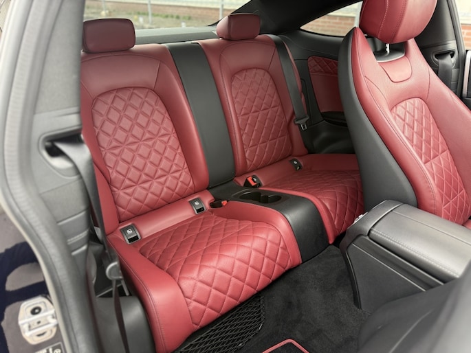 Uitgevoerd met o.a. AMG Line, Night pakket en een exclusief Designo interieur met rode lederen bekleding.