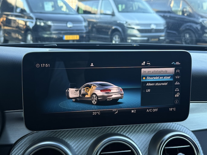 Ontspannen en zorgeloos autorijden, dat doet u met deze Mercedes-Benz C-klasse Coupé. Een beetje meer aandacht en een stoere uitstraling? Daar zorgt de AMG-styling voor. De aandrijving van deze Mercedes-Benz wordt verzorgd door een viercilinder benzinemotor en een automatische transmissie. Dankzij de elektrische stoelbediening is het gemakkelijk om de optimale zitpositie te vinden. Voel die ruimte eens! Lekker veel licht door het elektrisch bediende glazen panoramadak. De elektrisch bedienbare achterklep opent met een druk op de knop. Koplampen voorzien van de allernieuwste lichttechniek, matrix LED-verlichting. In deze Mercedes-Benz profiteert u onder andere ook van: 18 inch lichtmetalen velgen, AMG-styling, adaptief dempingsysteem, warmtewerend glas, LED-achterlichten en verstelbare lendensteunen.
