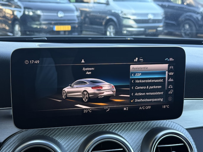 De nieuwste veiligheidssystemen komen in deze Mercedes-Benz C-klasse Coupé samen. De camera van de verkeersborddetectie herkent verschillende soorten verkeersborden en toont deze op het dashboard. Keep your lane? Het Lane-keeping systeem zorgt er automatisch voor. Actieve dodehoekdetectie waarschuwt als een ander voertuig zich in uw dode hoek bevindt. Dit verkleint de kans op een aanrijding. Met voorzieningen als forward collision warning system, hill hold functie, autonoom remsysteem en bandenspanningcontrolesysteem, bent u altijd veilig onderweg.