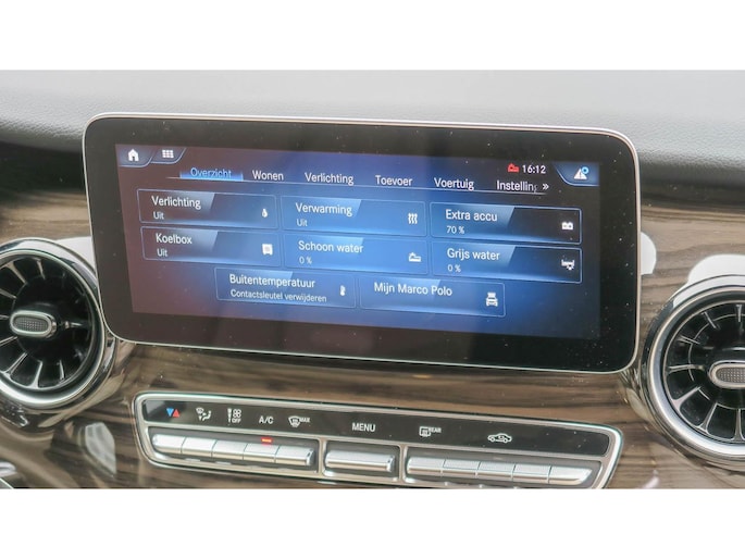 Mooi complete Marco Polo met Het Mbux Mbac besturingssysteem voor auto en camper, fraaie combinatie met de Graphit grijze metallic lak en de beige lederen Bekleding. Met een extra uitneembare stoel (niet afgebeeld) en 5 geregistreerde zitplaatsen.