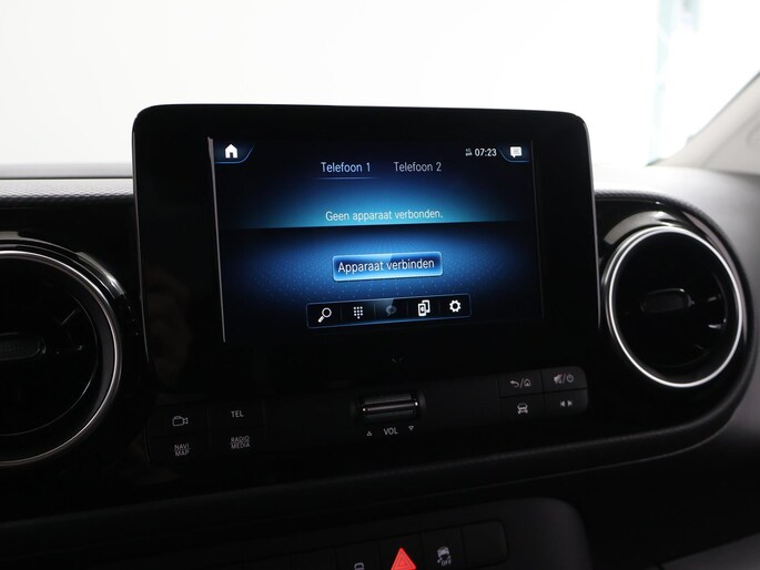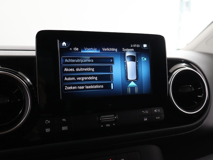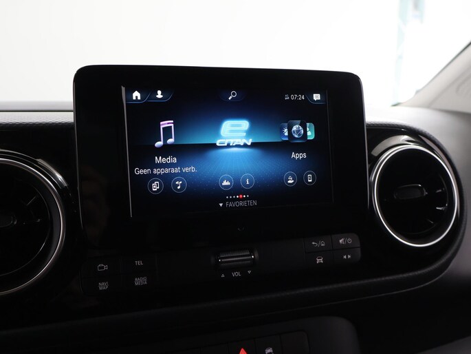 Onder alle omstandigheden perfect zicht op wat zich achter de auto afspeelt: de achteruitrijcamera zorgt ervoor! Automatische airconditioning regelt volautomatisch de temperatuur. U kiest de gewenste temperatuur en het systeem doet de rest. In deze Mercedes-Benz kunt u zich concentreren op het verkeer, terwijl de auto de omgeving voor u in de gaten houdt. Een automatisch inschakelbare verlichting zorgt dat de verlichting aangaat als het donkerder wordt - in tunnels bijvoorbeeld - en de regensensor schakelt de ruitenwissers in als het nodig is. U hoeft er niets aan te doen. Met deze auto bent u ontspannen onderweg dankzij de cruise control. Autosleutels overbodig. Deze Mercedes-Benz eCitan is voorzien van keyless start. Ook full map navigatiesysteem, DAB ontvangst, lederen stuur en boordcomputer horen tot de voorzieningen op deze auto.