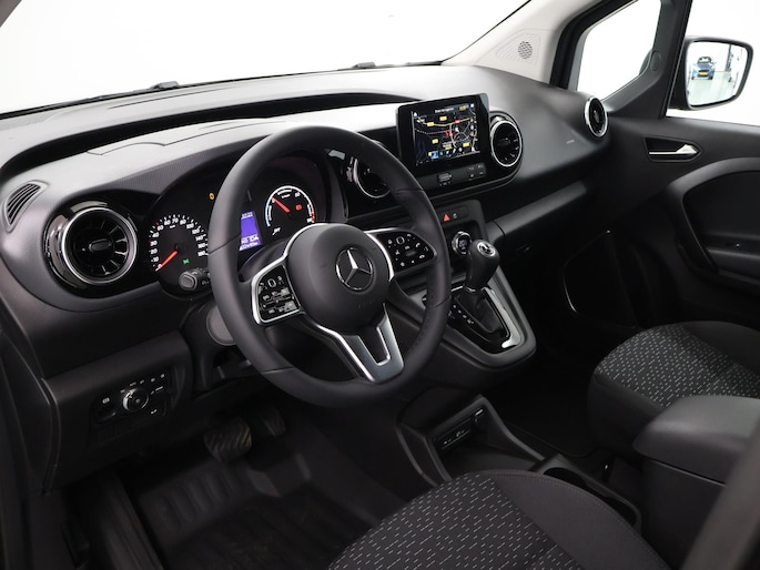 Ga je voor topklasse, dan is Mercedes de voor de hand liggende keus. 'The best or nothing', is het motto. Dankzij de automatische transmissie en elektrische aandrijving, navigeert u gemakkelijk door het verkeer. Deze nieuwe auto is nu uit voorraad leverbaar. De comfortstoelen zitten op lange ritten zo prettig dat u bijna vergeet te pauzeren. De schuifdeur voor de passagiers neemt veel minder ruimte in bij het opengaan; prettig als u wat krapper moet parkeren. In deze Mercedes-Benz profiteert u onder andere ook van: 16 inch lichtmetalen velgen, LED koplampen en warmtewerend glas.