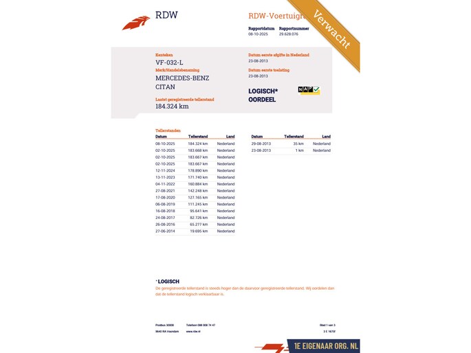 WORDT VERWACHT van 1e eigenaar afkomstig; Origineel Nederlands geleverde Mercedes Citan 108 CDI
