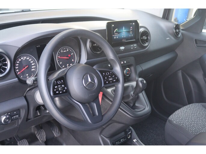 De Citan is o.a. voorzien van airco, MBUX multimediasysteem met Apple CarPlay en Android Auto, ,achteruitrijcamera, cruise control, multifunctioneel stuurwiel, trekhaak en volledige laadruimte betimmering.