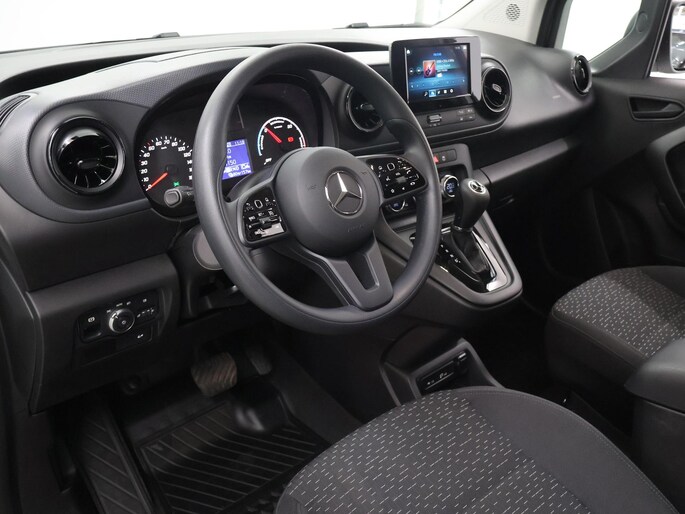 De Mercedes-Benz eCitan is uw trouwe partner onderweg, want hij houdt continu voor u de situatie op en om de weg in de gaten. Volautomatische veiligheidssystemen kunnen daarbij ingrijpen om u voor gevaarlijke situaties te behoeden. De actuele snelheidslimiet, een inhaalverbod en andere verkeersborden. De verkeersborddetectie ondersteunt u tijdens elke rit. Het Lane-keeping systeem registreert permanent of u binnen de lijnen van de rijstrook blijft; dwaalt u onbedoeld af, dan waarschuwt het systeem en corrigeert de koers. Hoe goed u ook oplet in het verkeer, de dode hoek blijft een risico. Gelukkig is deze Mercedes-Benz eCitan voorzien van actieve dodehoekdetectie. Bovenop deze veiligheidsfeatures heeft deze Mercedes-Benz bovendien hill hold functie, vermoeidheidsherkenning, autonoom remsysteem en bandenspanningcontrolesysteem.
