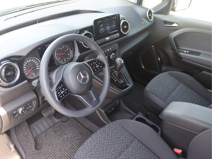 De Citan is o.a. voorzien van airco, automaat, MBUX multimediasysteem met Apple CarPlay en Android Auto, navigatie, achteruitrijcamera, cruise control en lichtmetalen velgen.