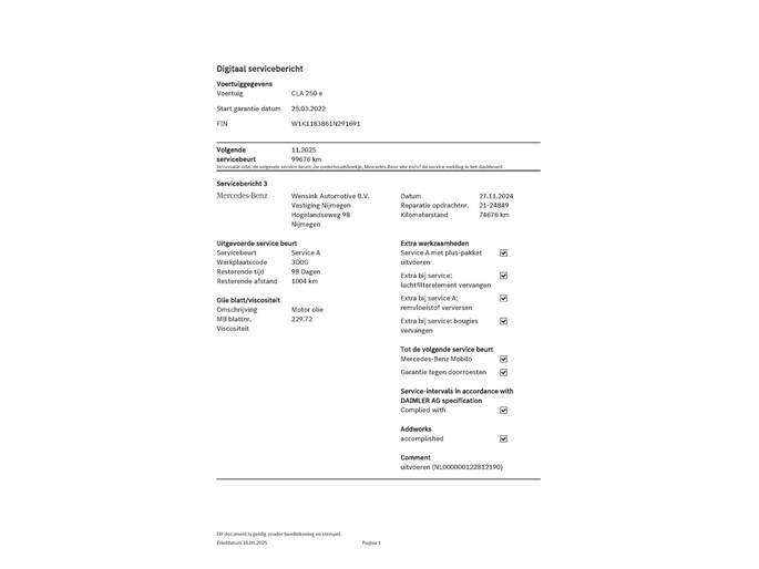 Kilometerstand gecontroleerd