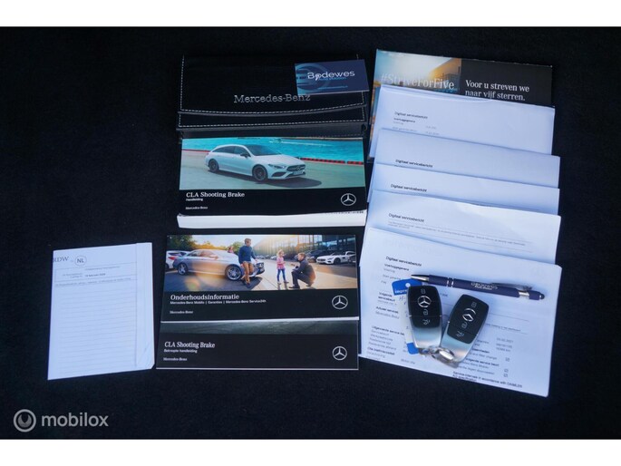 Nu Online deze fantastische origineel Nederlands geleverde CLA Shooting Brake in Kosmos Zwart Metallic. Deze Mercedes is besteld als Business Solution AMG, maar er zijn nog meer opties gekozen zoals, Advanced Soundsystem 853, Panorama schuif/kantel dak 413, Keyless Go P17 enz. Verder is de auto uiteraard voorzien van het MBUX multimedia systeem, Sfeerverlichting, en zo kunnen we een heel boekwerk typen. Hij is gewoon heel mooi!!! Op een paar hele kleine gebruiker sporen verkeerd de auto echt in nieuwstaat. Onderhoudshistorie is volledig aanwezig, auto is dealer onderhouden.