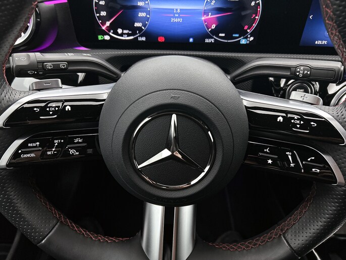 Via het digitale dashboard ben je permanent op de hoogte van alle informatie die je nodig hebt voor een veilige rit. 'Boem is ho'? Niet met deze parkeerhulp met achteruitrijcamera. U ziet achter net zo goed als voor en krijgt een duidelijk geluidssignaal! Naast handmatige bediening kun je belangrijke functies met je stem bedienen dankzij de ingebouwde spraakbediening. Zo'n lekkere jonge auto heeft natuurlijk leuke extra's, zoals remote services. Met een speciale app maak je overal verbinding met de auto. Zo kan je functies activeren en controleren. Zorgeloos en geconcentreerd rijden? Het navigatiesysteem met harde schijf wijst de weg! De Mercedes-Benz is standaard voorzien van: electronic climate control, sportstuur met schakelpaddels, draadloos opladen, DAB ontvangst, regensensor en cruise control met snelheidsbegrenzer.