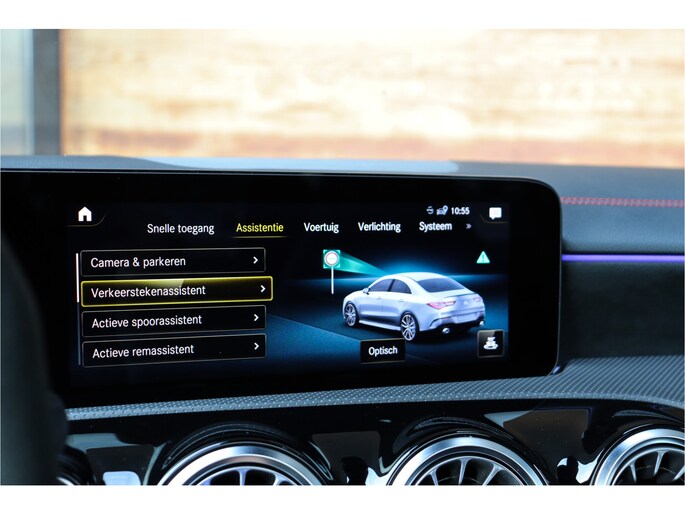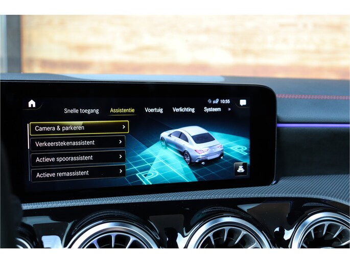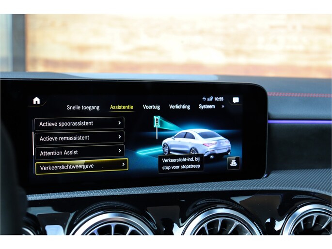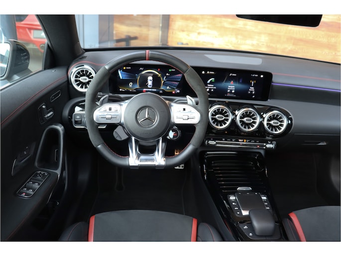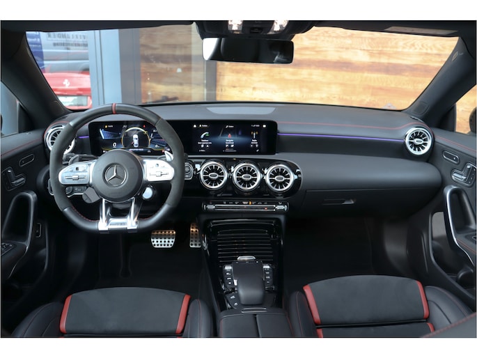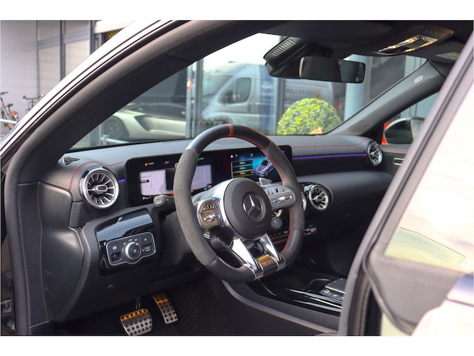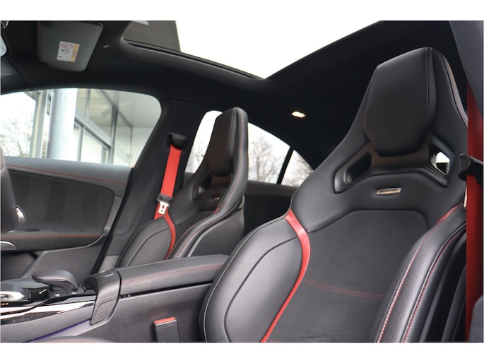 Deze Mercedes CLA 35 is o.a voorzien van: Schaalstoelen met rood stiksel en memory, Panoramadak, Memory, stoelverwarming, Apple carplay, 360 camera, etc