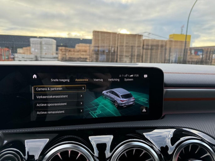 De nieuwste veiligheidssystemen komen in deze Mercedes-Benz CLA-klasse Shooting Brake samen. Tijdens de rit hebt u altijd een bijrijder, want de verkeersbord-detectie leest de borden langs de weg en projecteert ze voor u op het instrumentarium. Met het Lane-keeping systeem komt u nooit per ongeluk buiten de rijstrook. Actieve dodehoekdetectie waarschuwt als een ander voertuig zich in uw dode hoek bevindt. Dit verkleint de kans op een aanrijding. U bent mede dankzij forward collision warning system, autonoom remsysteem en bandenspanningcontrolesysteem steeds veilig onderweg.