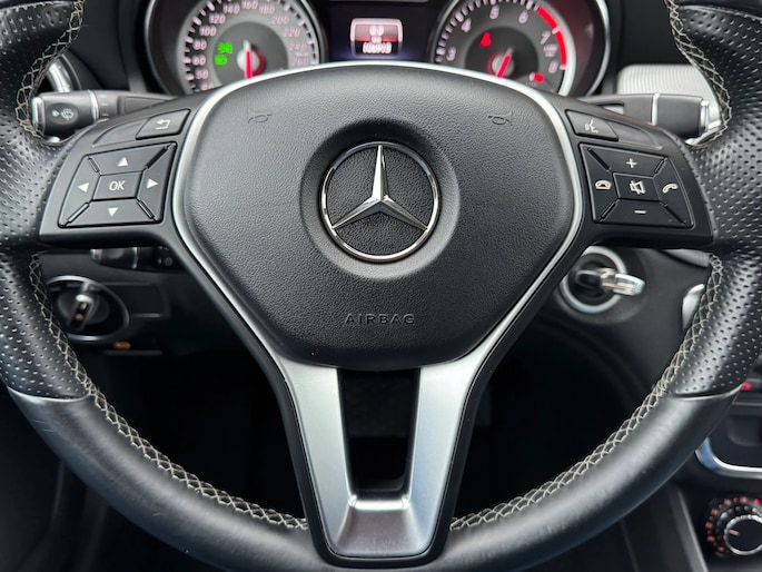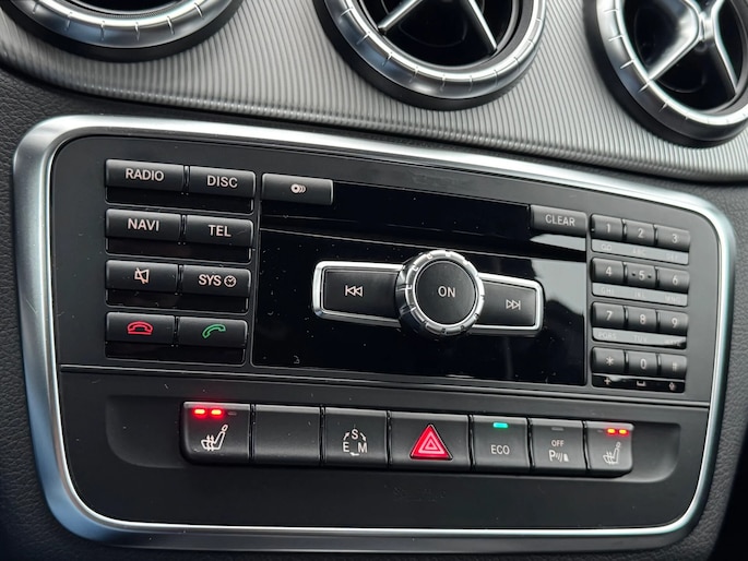 De snelste of zuinigste weg? Het navigatiesysteem met harde schijf aan boord wijst de juiste weg! Aan boord van deze Mercedes-Benz CLA-klasse is een achteropkomend verkeer waarschuwing voor extra veiligheid. Dankzij automatische airconditioning is het interieur behaaglijk warm of verfrissend koel. Met de audiobediening op het stuur regelt u de geluidsinstallatie gemakkelijk en veilig. Superstrak parkeren wordt een eitje dankzij de parkeersensoren. Met sportstuur met schakelpaddels, regensensor, cruise control, automatisch dimmende binnenspiegel, isofix-aansluiting en centrale deurvergrendeling met afstandsbediening is deze auto helemaal compleet.
