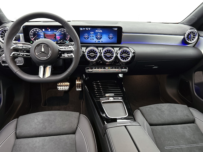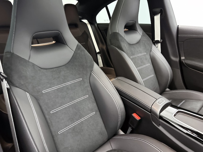 Combineer de functionaliteit van een gezinsauto met de prestaties van een sportwagen, en je krijgt deze sportieve Mercedes-Benz CLA-klasse. Lekker sportief en een tikkie stoer: de AMG-styling geeft een hele dynamische uitstraling. Je kunt deze nieuwe auto nu direct verkrijgen, want hij is op voorraad. Hij heeft een benzinemotor en een automatische transmissie. Neem plaats op de comfortabele stoelen. Dankzij de elektrische bediening en het geheugen is het eenvoudig om hierin de beste zitpositie te vinden. Een praktische extra is de elektrisch bedienbare achterklep die opent en sluit met een druk op de knop. Het wijdse uitzicht door het glazen panoramadak maakt van elke rit een belevenis. Vergeet halogeen; deze koplampen gebruiken de allernieuwste matrix LED-technologie met maximale lichtopbrengst zonder de tegenligger te hinderen. Bij de uitrusting van deze auto horen onder meer 19 inch lichtmetalen velgen, AMG-styling, dynamisch onderstel, in delen neerklapbare achterbank, verstelbare lendensteunen en snelheidsafhankelijke stuurbekrachtiging.