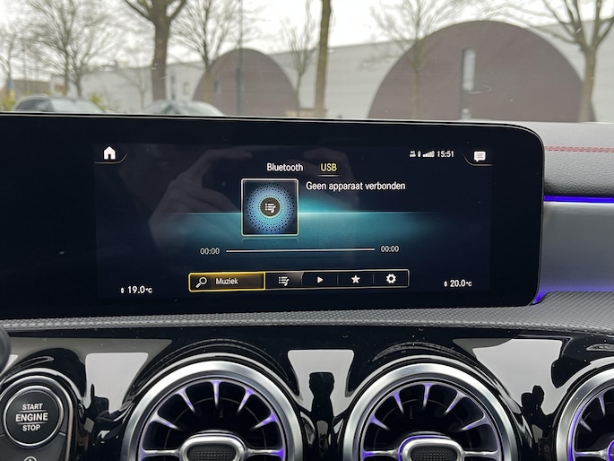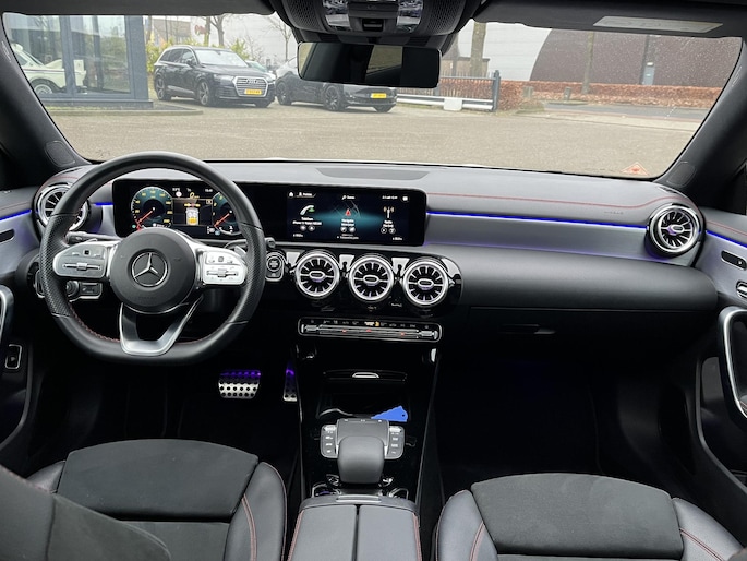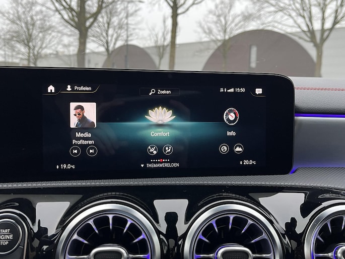 Deze CLA is uitgerust met alle juiste opties die je mag verwachten. Denk hierbij aan elektrisch verstelbare stoelen met geheugen, een elektrisch panoramadak, Apple CarPlay, sfeerverlichting, stoelverwarming en een achteruitrijcamera. Kortom: bomvol opties.