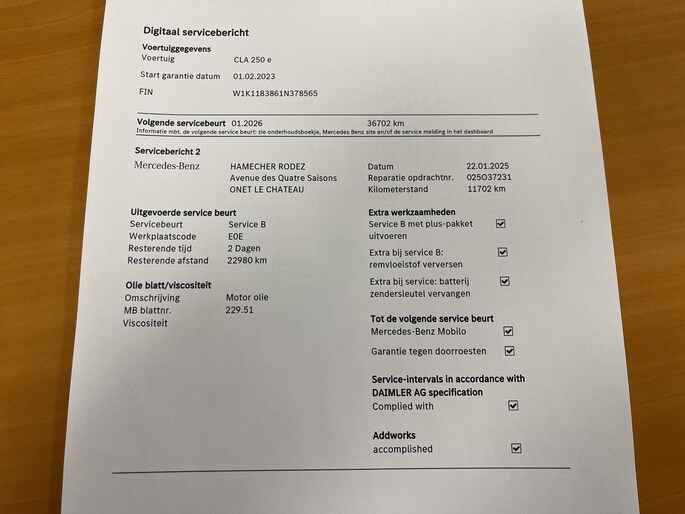 - Servicebeurt voor aflevering volgens fabrieksschema