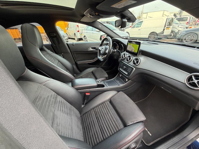 Deze Mercedes-Benz CLA-klasse combineert sportieve rijeigenschappen met comfort en uitstraling. De AMG-styling geeft de auto een dynamisch en krachtig karakter. De aandrijving wordt verzorgd door een viercilinder motor in combinatie met een automatische transmissie. Het interieur is uitgevoerd in leder en wordt extra licht en ruimtelijk dankzij het elektrisch bedienbare glazen panoramadak. Praktisch gemak is aanwezig in de vorm van een elektrisch bedienbare achterklep en stoelverwarming voor extra comfort tijdens koude dagen. De xenonverlichting zorgt voor optimaal zicht onder alle omstandigheden. Verder is de auto uitgerust met 18 inch lichtmetalen velgen, LED-koplampen, sportonderstel, halflederen bekleding en extra getint glas.