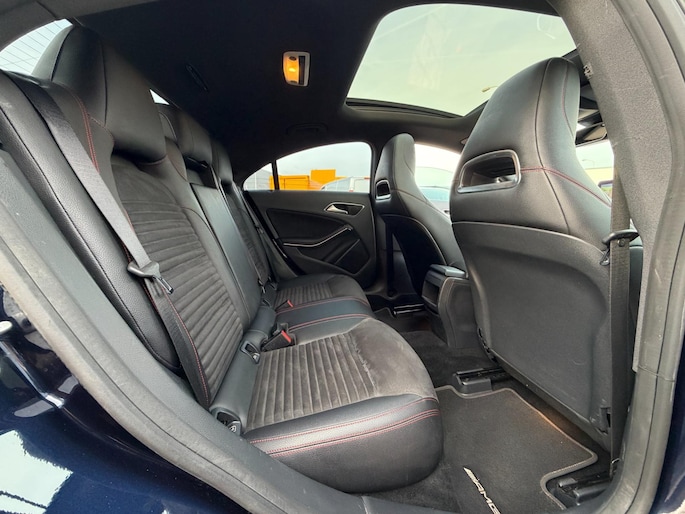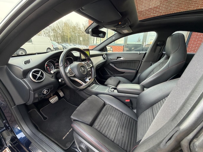 Deze CLA is rijk uitgerust met onder andere een panoramadak, automatische transmissie, AMG-pakket met rode stiksels, alcantara/lederen interieur, keyless entry, achteruitrijcamera, full-map navigatiesysteem, LED High Performance koplampen, originele AMG lichtmetalen velgen en cruise control.