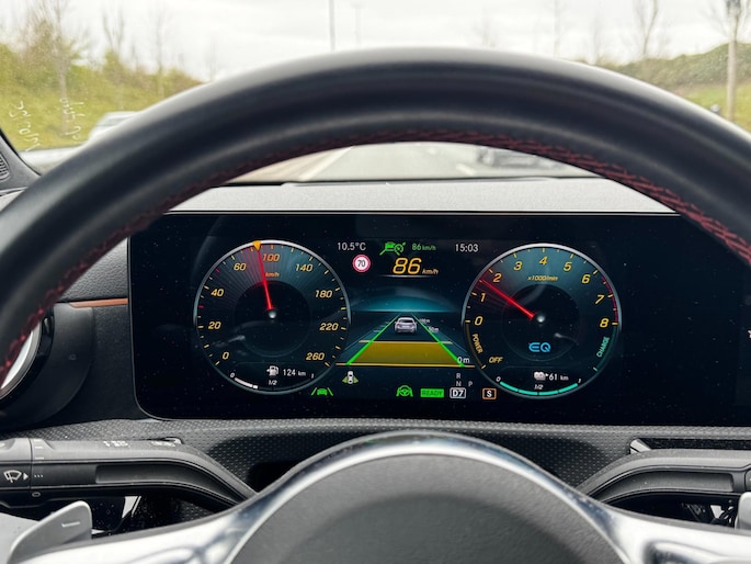 Snelheid, omgevingsinfo, navigatie en communicatie... Het digitale dashboard geeft alles realtime weer. Het gebruik van de 360 graden camera op deze auto helpt u bij het navigeren door lastige rijbanen en het drukke stadsverkeer. Uw smartphone wordt een dashboard, met alle functies in beeld. Dankzij Connected Services en de speciale app. Het is veiliger om altijd uw ogen op de weg te houden en uw handen aan het stuur; daarom is dit voertuig uitgerust met een audiosysteem met DAB-ontvangst en een navigatiesysteem met harde schijf dat kan worden bediend via het stuurwiel of spraakbediening. Tot de standaard uitrusting van deze auto hoort ook electronic climate control. Ook is de Mercedes-Benz uitgerust met: sportstuur met schakelpaddels, regensensor, cruise control, keyless entry en automatisch dimmende buitenspiegels.