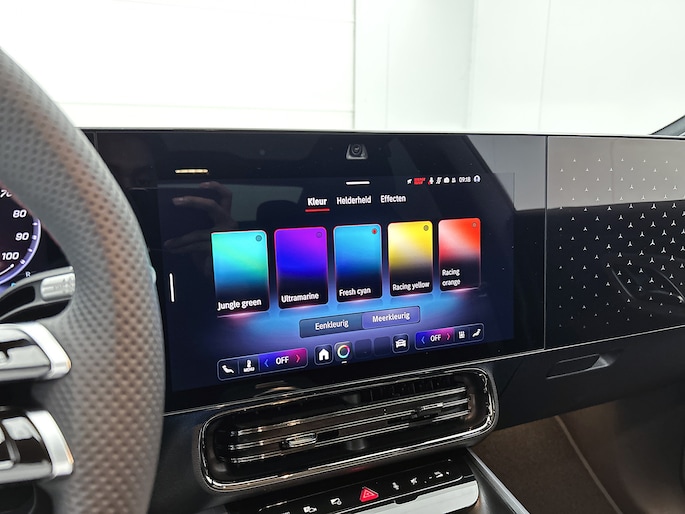 Het digitale dashboard is niet alleen enorm fraai en handig, maar draagt actief bij aan een veilige en slimme rit. Zodra je naar de 'R' schakelt, gaat de achteruitrijcamera in werking en heb je een perfect zicht op alles wat zich achter de auto afspeelt. Met adaptive cruise control houdt de auto zelfstandig afstand tot jouw voorligger. Een veiligheidsverhogende optie waarmee je comfortabel onderweg bent. Een smartphone met internetverbinding legt eenvoudig overal contact met de auto. Je kan kunt functies activeren en de conditie van de auto monitoren. Het infotainmentaanbod is zeer uitgebreid. Ontspannen reizen doe je met behulp van het navigatiesysteem met harde schijf terwijl je muziek afspeelt via het audiosysteem met DAB-radio en smartphone connectiviteit. Je bent in deze Mercedes-Benz ook voorzien van WIFI-hotspot, electronic climate control, draadloos opladen, keyless entry en automatisch dimmende binnenspiegel.