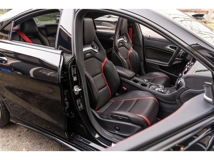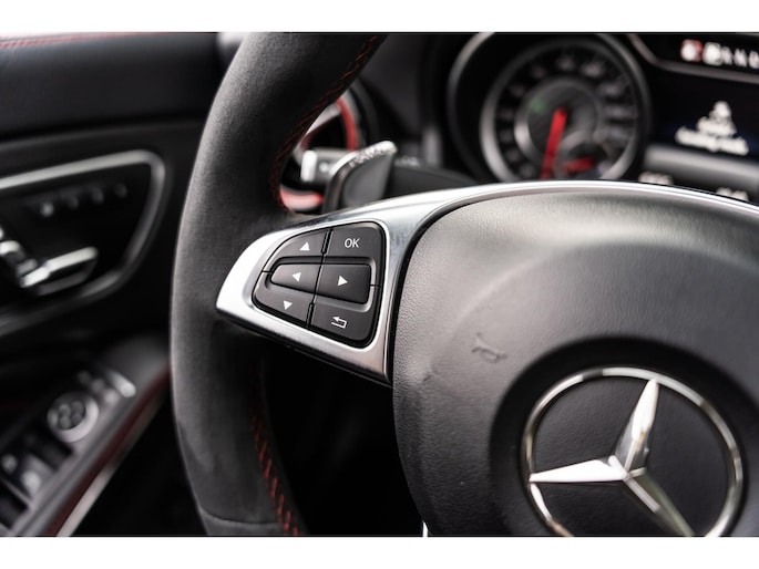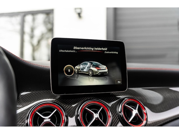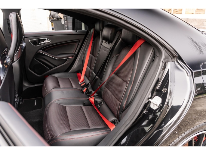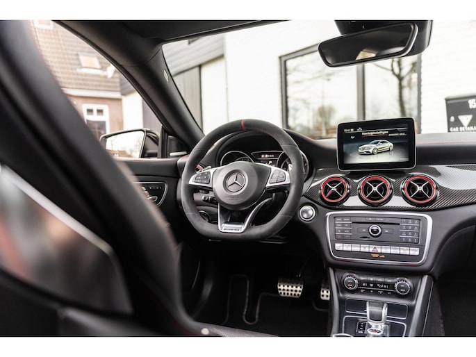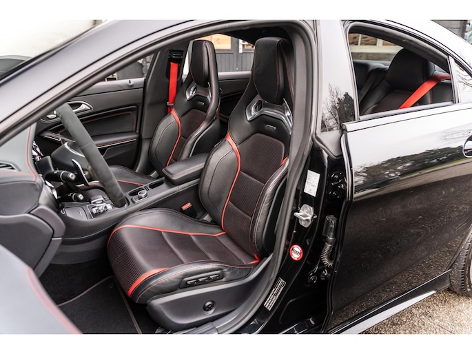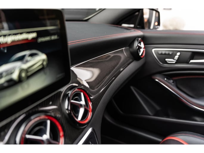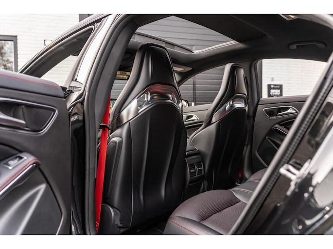 De Mercedes-Benz CLA 45 is bij uitstek één van de meest sportieve compact-cars in zijn segment. Met de mooie diep zwarte metallic lak, het AMG spoiler pakket en de 19 inch velgen klopt het plaatje. De 381 pk sterke motor zorgt ervoor dat deze CLA 45 in 4,2 seconden 100 km/h bereikt. Naast deze krachtige en snelle auto kan jij ook kiezen voor comfort. Met enkele knoppen kan jij de adaptieve demping aanpassen, genieten van jouw favoriete muziek via het Harman / Kardon Sound System in combinatie met het panoramadak. De mooie Recaro stoelen met zwart leer en rode sticksel en bies zien er niet alleen maar mooi uit maar zitten ook nog eens lekker en zijn compleet te verstellen. Zo zitten er nog veel meer mooie opties op deze waanzinnige auto.