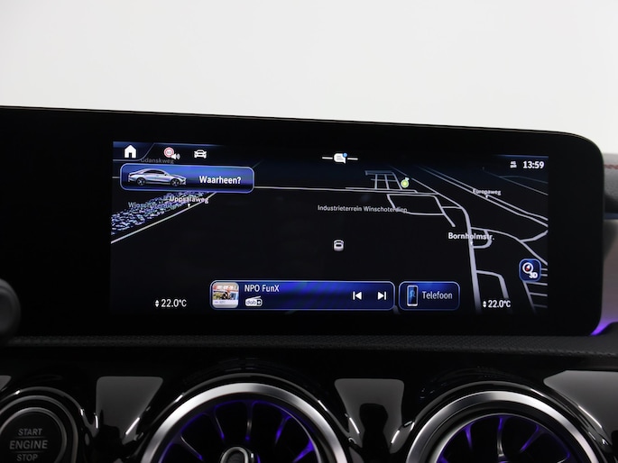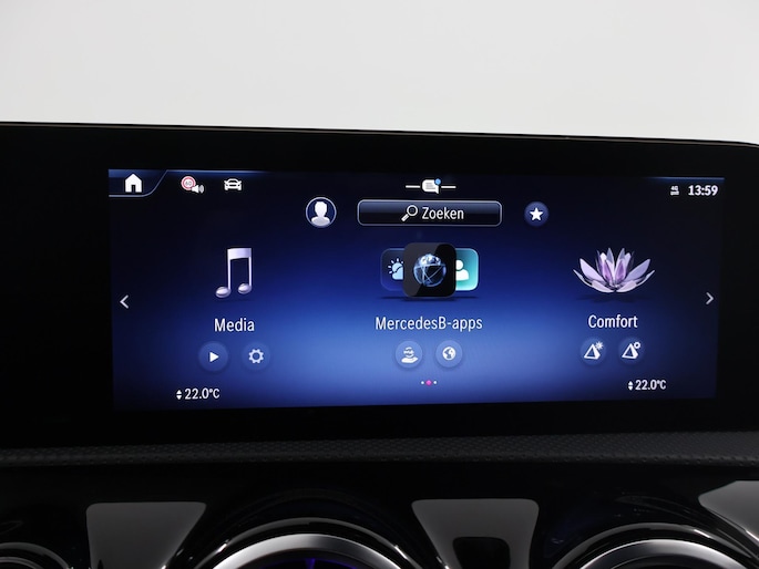 Het digitale dashboard ondersteunt u voortdurend met actuele, bruikbare informatie. De functie van de 360 graden camera in deze auto is om u een totaaloverzicht van de omgeving te geven, ongeacht hoe smal de straat of parkeerplek is. Adaptive cruise control houdt de ingestelde snelheid vast en houdt afstand tot het voertuig voor u. Deze Mercedes-Benz CLA is voorzien van remote services. Via uw smartphone bedient u diverse functies ook op afstand en krijgt u informatie over de status van uw auto. Elk genre muziek komt tot z'n recht. Het high performance audiosysteem is perfect in te regelen op uw smaak! Deze auto is voorzien van dashboard met spraakbediening, navigatiesysteem met harde schijf, electronic climate control, draadloos opladen, DAB ontvangst en regensensor.