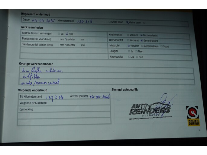 Onderhoudsboekjes: Aanwezig