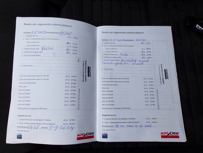 Onderhoudsboekjes: Aanwezig