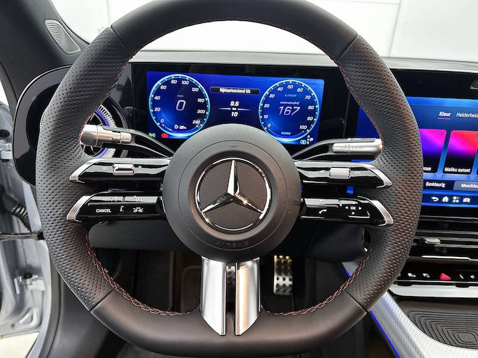 Een klassebak is wat oneerbiedig om te zeggen over deze Mercedes. Het merk noemt het zelf 'The best or nothing', en dat klinkt al een stuk beter. Maar wat je ook zegt, dit is absoluut een voortreffelijke auto in alle opzichten. De batterijtechniek heeft de afgelopen jaren enorme vooruitgang geboekt, zodat jij met deze auto op een volle acculading echt ver kunt komen. En als je de auto 's avonds aan de lader koppelt, is hij de volgende dag weer helemaal vol. Drie letters veranderen deze Mercedes-Benz in een uitzonderlijke Mercedes-Benz. De AMG-styling staat voor individualiteit en sportiviteit. Het is een nieuwe auto, hij is nu uit voorraad leverbaar. Een krachtige motor geeft deze auto zijn sportieve prestaties. Zit je goed? De stoelen zijn eenvoudig instelbaar dankzij de elektrische bediening met geheugen. Een handige voorziening op deze auto is de elektrische achterklep die je op afstand kunt openen. Wat een heerlijk ruim gevoel en zoveel licht geeft dat glazen panoramadak! Pak aan, 't is winter! Zo'n verwarmd stuurwiel is dan bijzonder prettig! Bij de uitrusting van deze Mercedes-Benz horen onder meer Full LED koplampen, AMG-styling, in delen neerklapbare achterbank, verstelbare lendensteunen, verwarmde ruitensproeiers en snelheidsafhankelijke stuurbekrachtiging.