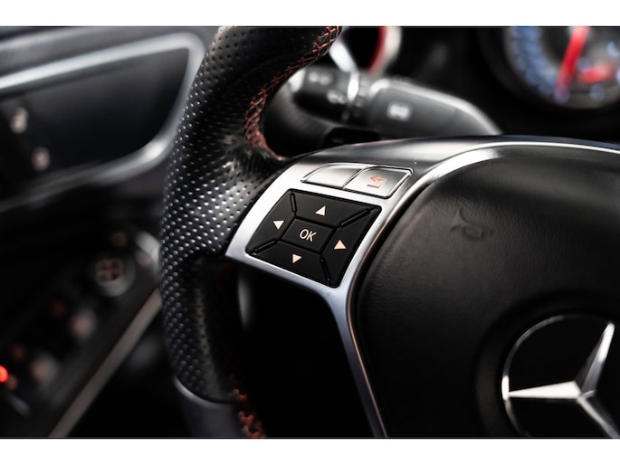 U kunt uw ogen op de weg houden, want het audiosysteem en het navigatiesysteem bedient u vanaf het stuurwiel. De achteropkomend verkeer waarschuwing bewaakt de afstand tot achterliggers en geeft een signaal als er te weinig ruimte is. U kunt bij het inparkeren natuurlijk niet aan alle kanten ogen hebben. Daarom is deze Mercedes-Benz CLA-klasse voorzien van parkeersensoren! Meer rijcomfort en minder brandstofgebruik? Even de cruise control instellen en dan ontspannen rijden! Vanzelfsprekend is deze auto ook van airconditioning voorzien. En dan is deze auto ook nog eens voorzien van sportstuur met schakelpaddels, automatisch dimmende binnen- en buitenspiegels, centrale deurvergrendeling met afstandsbediening en lederen versnellingspook.