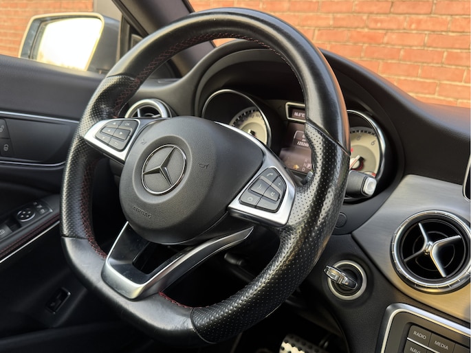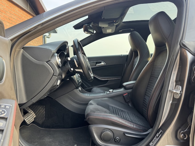 Ontdek de vele kwaliteiten van de Mercedes-Benz CLA-klasse. Met zijn tijdloze design, zijn krachtige motor en zijn vele veiligheidssystemen laat deze auto u versteld staan. De AMG-styling voegt een aantal uitgesproken sportieve accenten toe. Hij heeft een benzinemotor en een automatische transmissie. De strakke sportstoelen hebben niet alleen de looks, maar bewijzen ook hun functie als u wat meer vraagt in de uitdagende bochten. Licht en lucht komen onbelemmerd binnen als het elektrisch bediende glazen panoramadak met één druk op de knop wordt geopend. De elektrisch bedienbare achterklep opent met een druk op de knop. Xenonverlichting zorgt in het donker voor beter zicht. Ook is de auto voorzien van: 18 inch lichtmetalen velgen, AMG-styling, zwarte hemelbekleding, getint glas, LED-achterlichten en verstelbare lendensteunen.