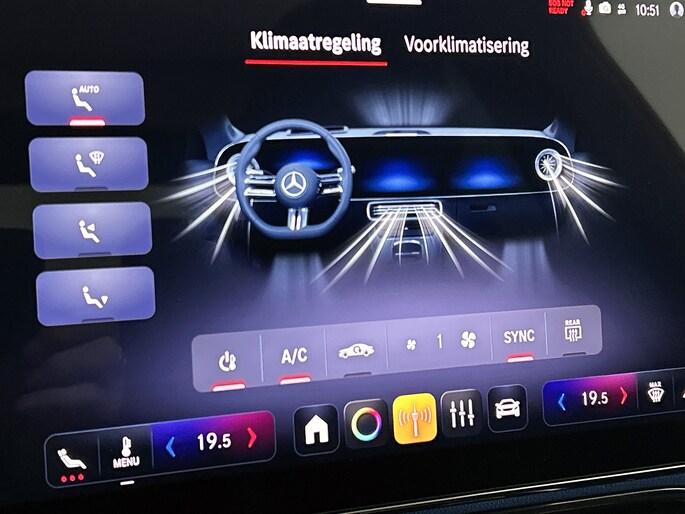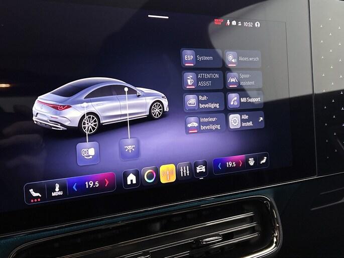 Tijdens de rit wordt je als bestuurder ondersteund door verschillende systemen die de weg en jouw omgeving in de gaten houden. Bij de veiligheidssystemen van deze Mercedes-Benz hoort ook de verkeersbord-detectie. Die leest tijdens het rijden als het ware met je mee en attendeert je op de significante verkeersborden langs en boven de weg. Het Lane-keeping systeem garandeert dat je je niet onverhoeds buiten de lijnen van de rijstrook begeeft. De actieve dodehoekdetectie draagt bij aan jouw eigen veiligheid en die van je medeweggebruikers. In deze Mercedes-Benz vinden we verder een rem-assistent, vermoeidheidsherkenning en bandenspanningcontrolesysteem.