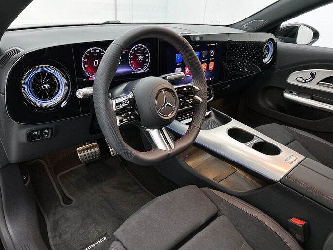 Half werk zul je bij geen enkele Mercedes tegenkomen. 'The best or nothing', inderdaad. De elektromotor is stil en schoon. En met een verrassend grote actieradius! AMG-styling vertegenwoordigt de overtreffende trap in smaakvolle sportiviteit. Het gaat hier om een nieuwe auto, die uit voorraad leverbaar is. Een krachtige motor geeft deze auto zijn sportieve prestaties. Je past de stoelen moeiteloos aan, ze zijn elektrisch in te stellen en hebben bovendien een geheugen. Maximaal daglicht, royaal uitzicht: het glazen panoramadak zorgt ervoor! Met matrix LED-verlichting rijd je eigenlijk altijd met groot licht, dus maximaal zicht. Toch is verblinden er niet bij, want het systeem regelt de verlichting zo dat tegenliggers er geen last van hebben. Natuurlijk behoren 19 inch lichtmetalen velgen, AMG-styling, warmtewerend glas, in delen neerklapbare achterbank, verstelbare lendensteunen en snelheidsafhankelijke stuurbekrachtiging ook tot de uitrusting van deze complete auto.