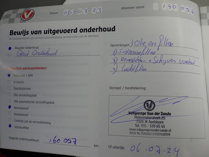 Kilometerstand gecontroleerd