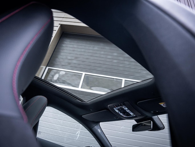 Bij het instappen ervaar je direct het gemak van keyless entry en word je verwelkomd in een moderne en sfeervolle cockpit. Het panoramadak zorgt voor een heerlijk ruimtelijk gevoel, terwijl de sfeerverlichting in het dashboard het interieur een luxe ambiance geeft.