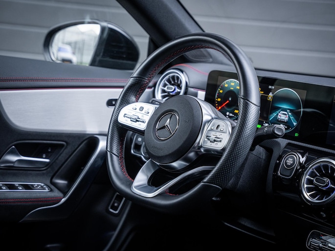Prachtige Mercedes-Benz CLA 250e uit 2022, uitgevoerd in het stijlvolle Moonstone Gray en rijk uitgerust met luxe en sportieve opties. Deze auto is een echte eyecatcher dankzij het AMG exterieur en interieur, perfect gecombineerd met het Nightpakket voor een extra stoere uitstraling.