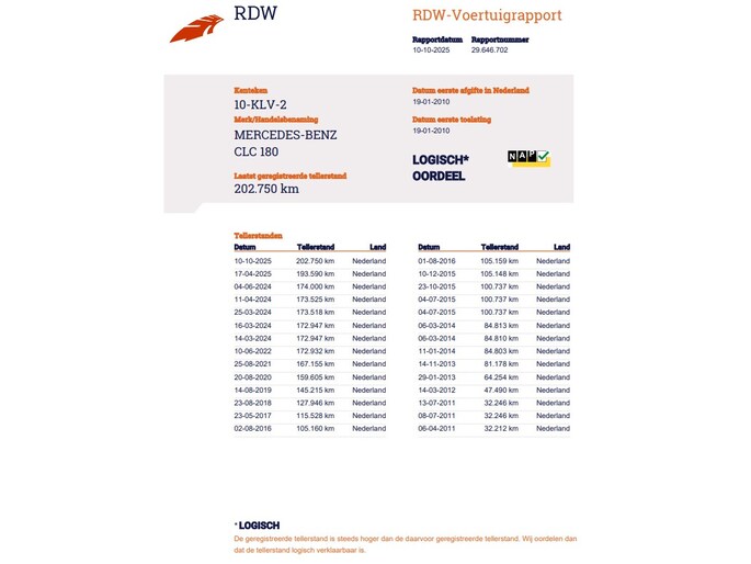 Kilometerstand gecontroleerd