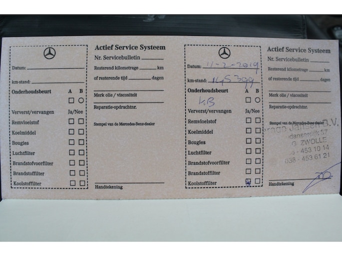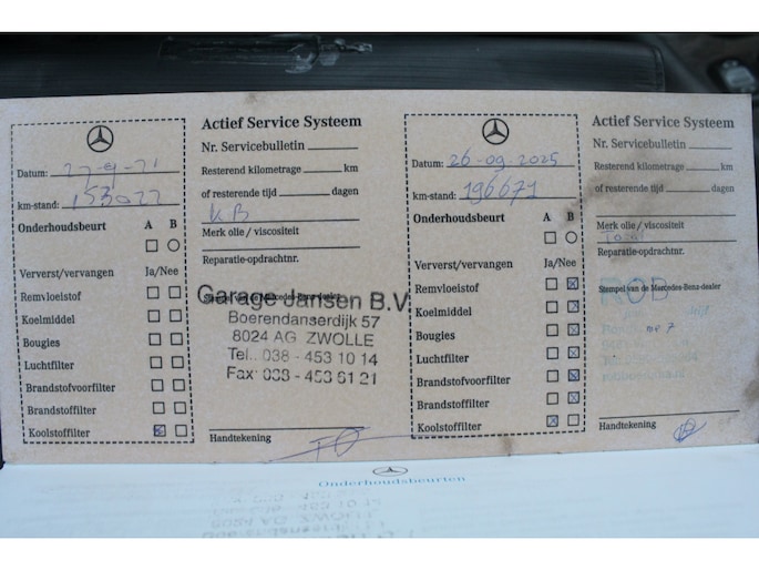 Laatste onderhoudsbeurt uitgevoerd bij 196.671km